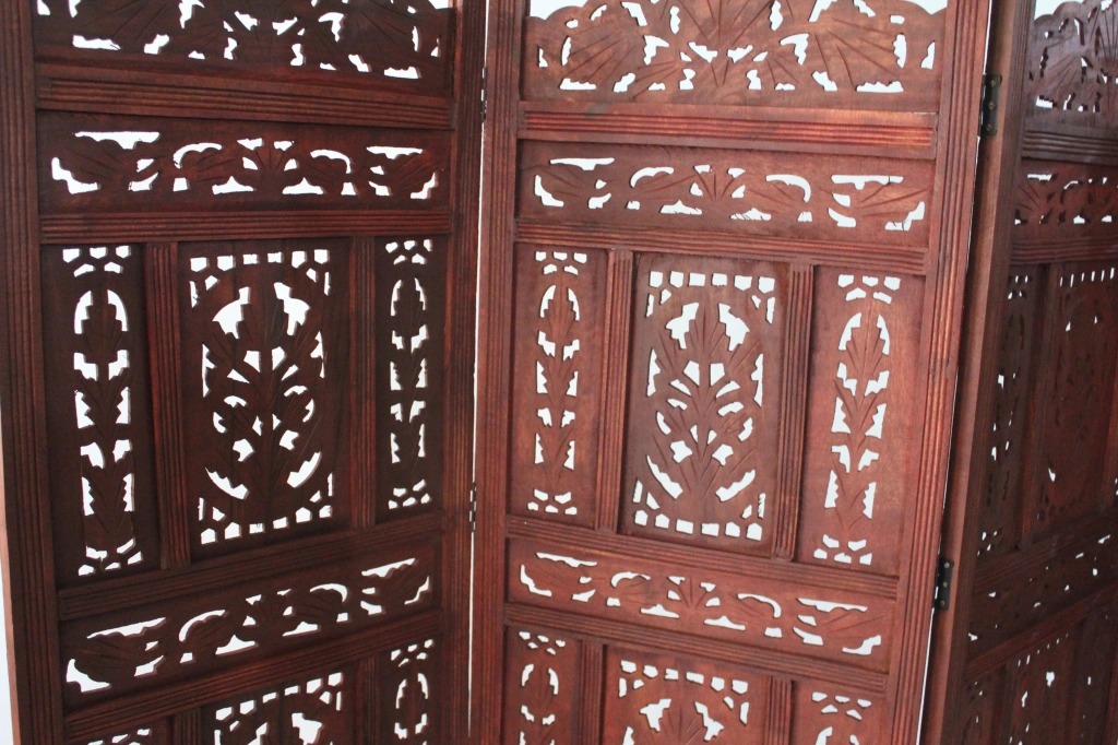 Ahşap Maun Rengi El Oyması Paravan NO:A