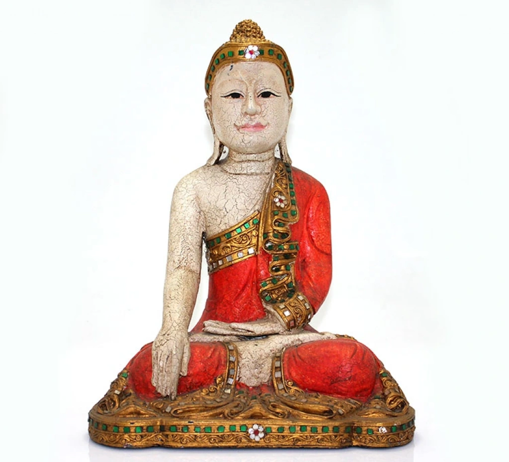 Ahşap Oturan Buda Figürü 2/9