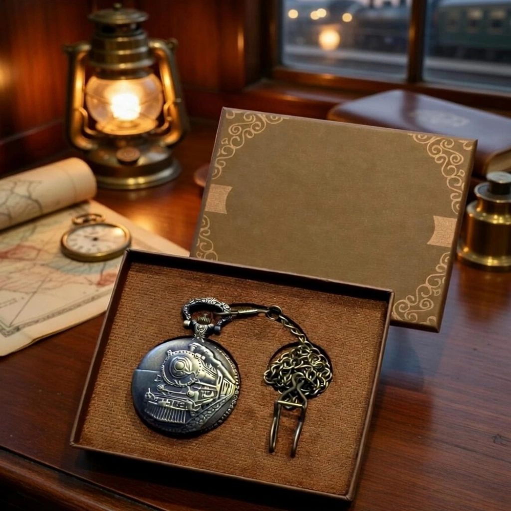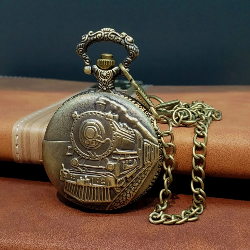 Antika Tren Tasarımlı Köstekli Cep Saati