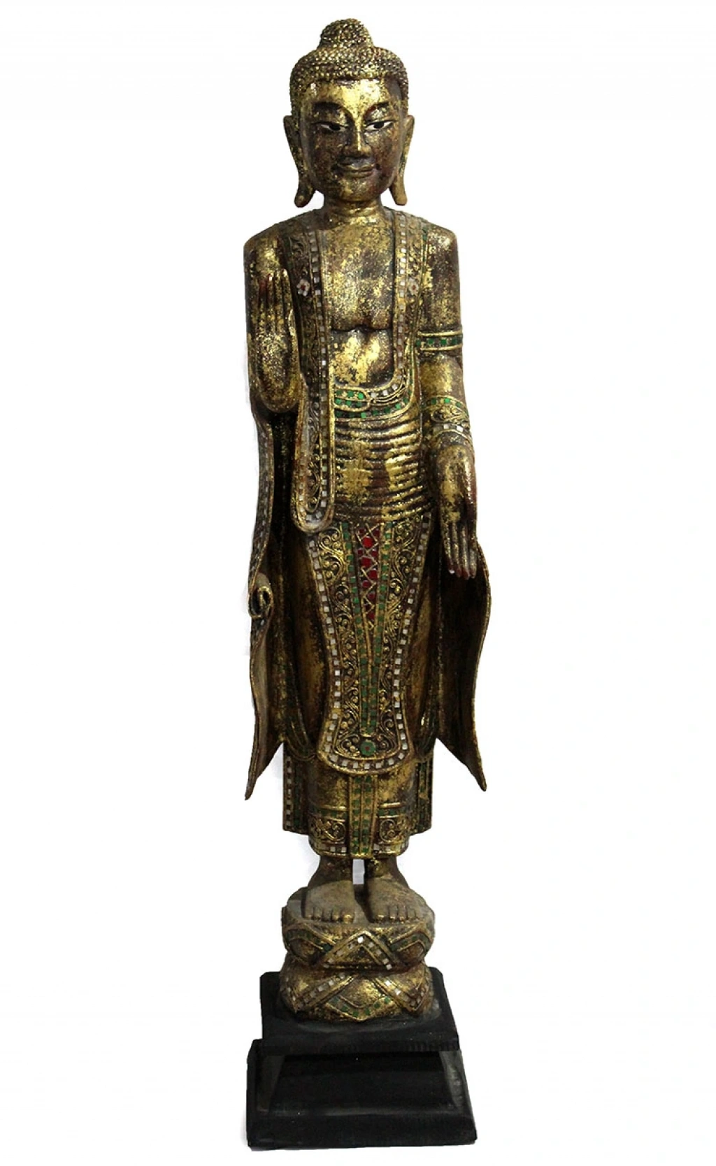 Ayakta Duran Ahşap Buda Figürü Kl 54
