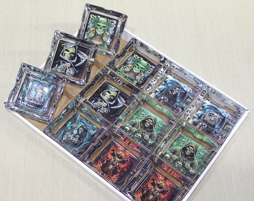 CAM KÜLLÜK MODEL 38Ürün ÖzellikleriKare şekilli cam küllük, üzerine kuru kafa baskısı ile tasarlanmış dikkat çekici bir obje. Hem işlevsel hem de dekoratif amaçla kullanılabilir. Dayanıklı cam malzemeden üretilmiş olup, uzun ömürlüdür. Kuru kafa baskısı, modern ve özgün bir tarz yaratır, farklı mekanlarda dikkatleri üzerine çeker.Paket İçeriği1 Adet Cam Küllük Model 38