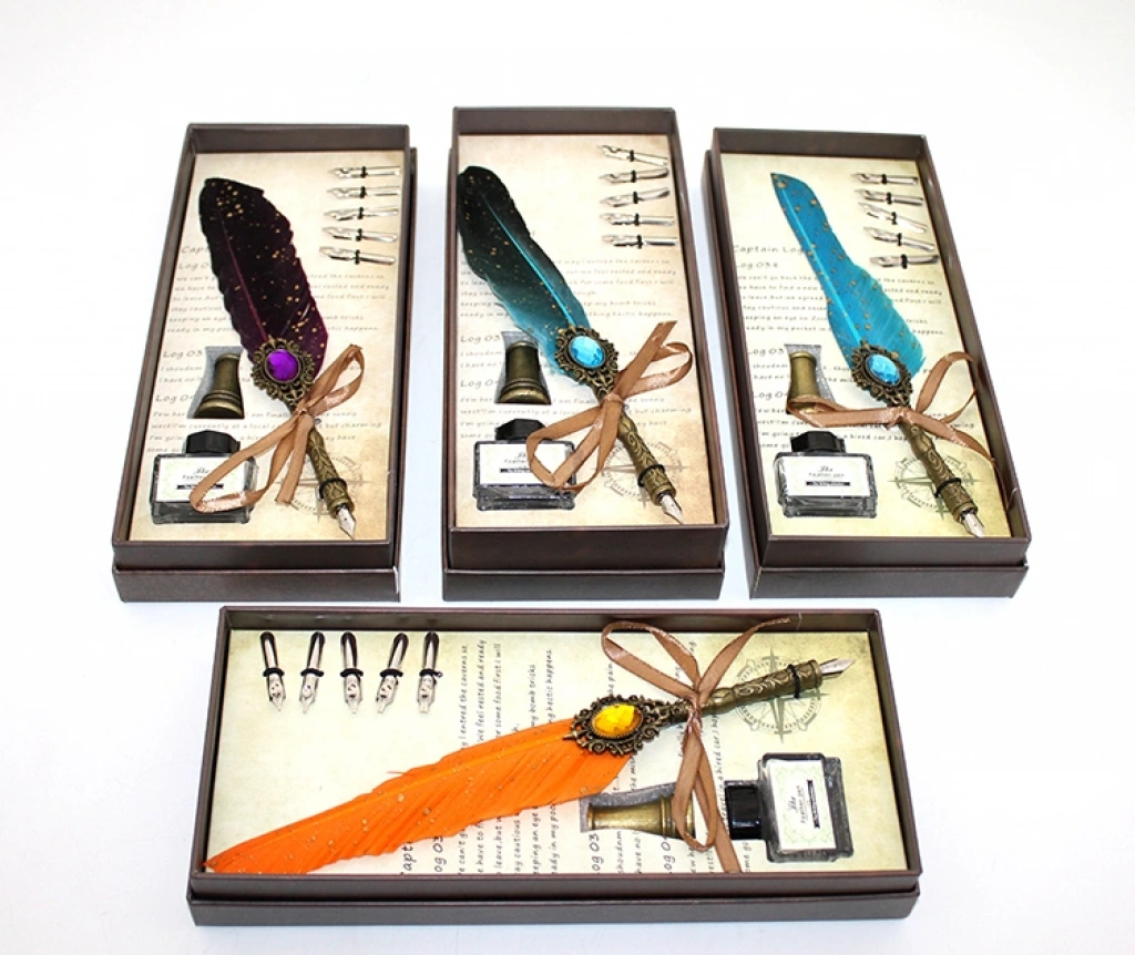 DIVIT HOKKA SETİ MODEL 1Ürün ÖzellikleriDivit Hokka Seti Model 1, renkli ve taşlı tasarımıyla hem estetik hem de işlevsel bir yazı setidir. Set içerisinde yer alan tüy divit, zarif taş detayları ve renkli tüyüyle yazı yazmayı daha keyifli hale getirir. Hokka, mürekkebinizi şık bir şekilde saklamanızı sağlarken, setin nostaljik ve zarif tasarımı, masa dekorasyonu için de idealdir. Geleneksel yazı sanatlarını sevenler ve özel hediye arayanlar için mükemmel bir seçenektir.Not: Ürün farklı renklerde mevcuttur ve stok durumuna göre karışık gönderim yapılmaktadır. Paket İçeriği1 adet Divit Hokka Seti Model 1