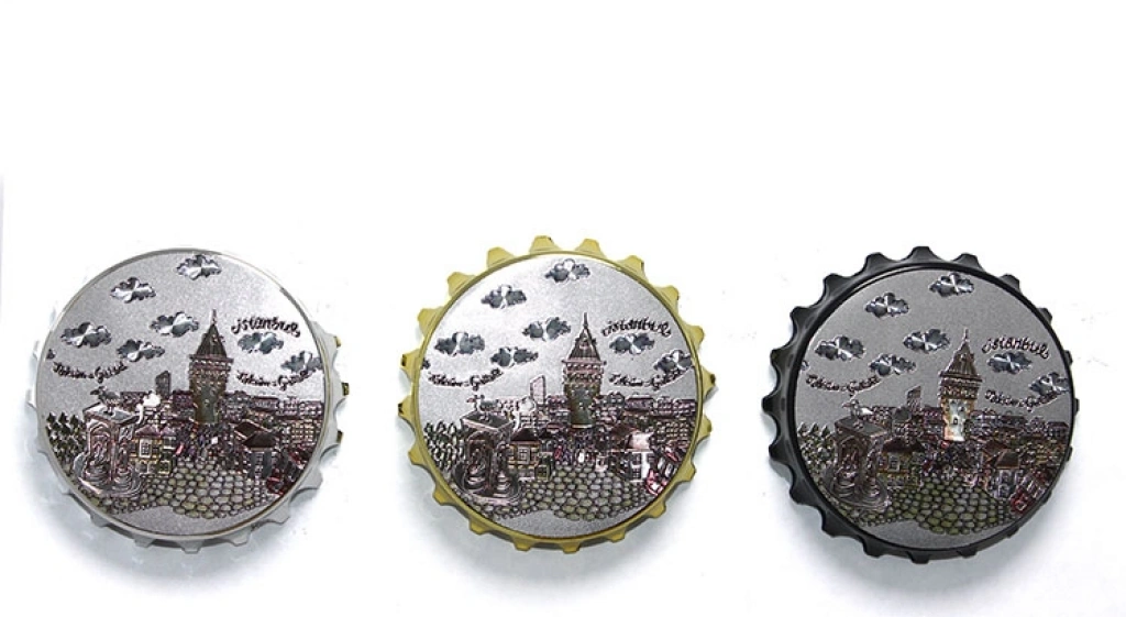 İSTANBUL TEMALI MAGNET MODEL 11 Ürün Özellikleriİstanbul Temalı Magnet Model 11, gazoz kapağı tasarımı ile nostaljik ve şık bir dekoratif üründür. Dayanıklı metal malzeme kullanılarak üretilmiş olup, uzun ömürlü kullanım sağlar. Gazoz kapağı şeklindeki tasarım, İstanbul’un kültürel simgelerini eğlenceli bir şekilde yansıtarak, şehri sevenler için farklı bir hediye seçeneği sunar. Mıknatıslı özellik sayesinde bu magnet, buzdolabı veya metal yüzeylere kolayca yapışır.Paket İçeriği1 adet İstanbul Temalı Magnet Model 11