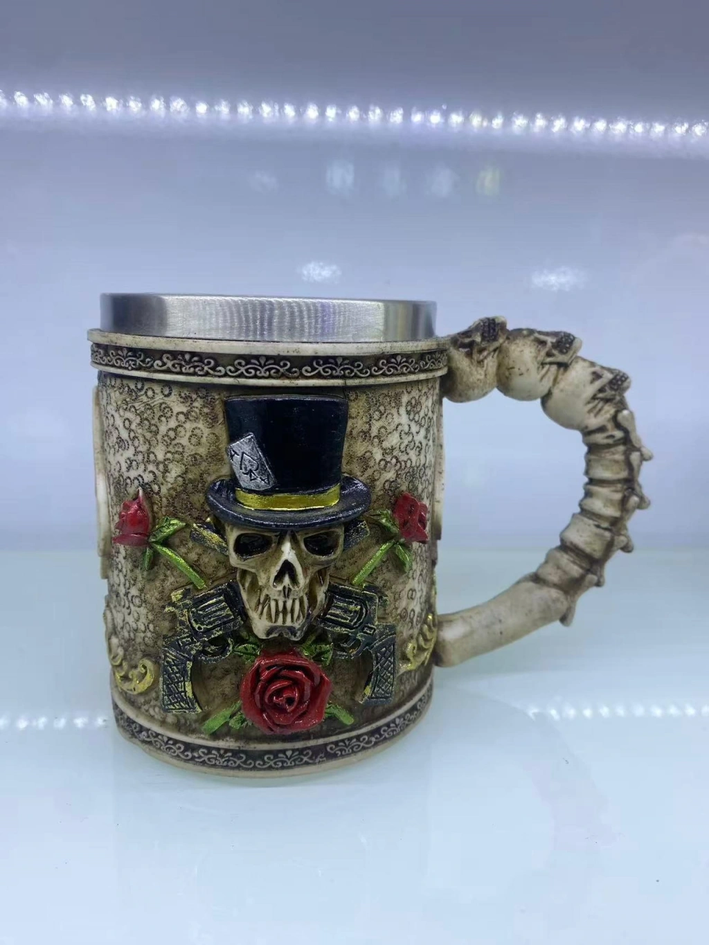 Büyük Boy Eskitme Motifli Çelik Kupa Kod 8026