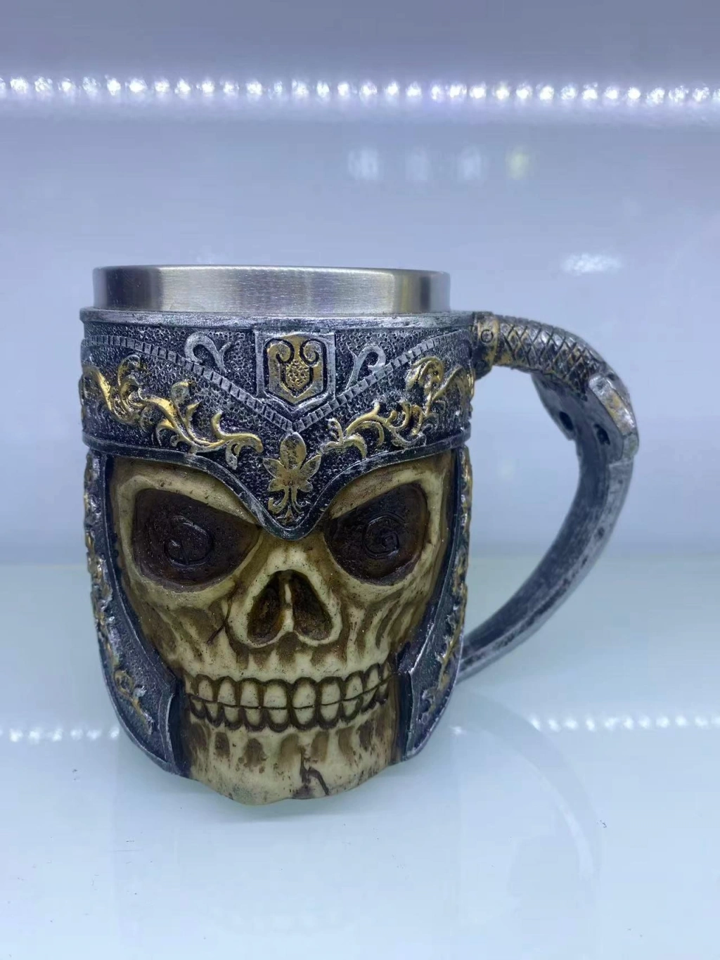 Büyük Boy Eskitme Motifli Çelik Kupa Kod 8026