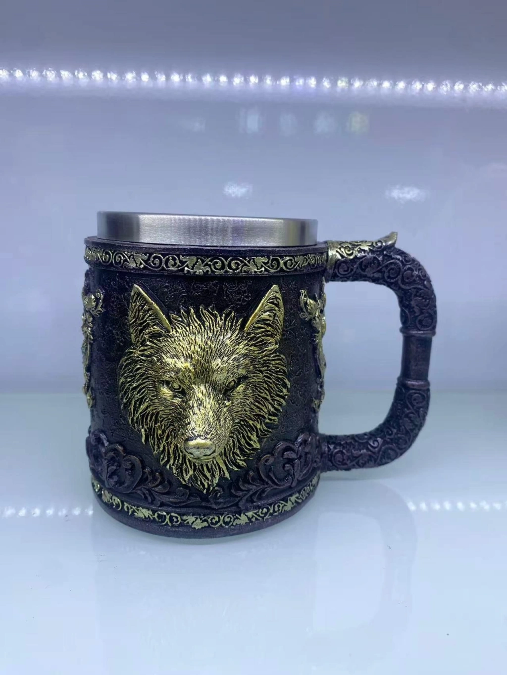 Büyük Boy Kurt Motifli Çelik Kupa Bardak Kod 8410