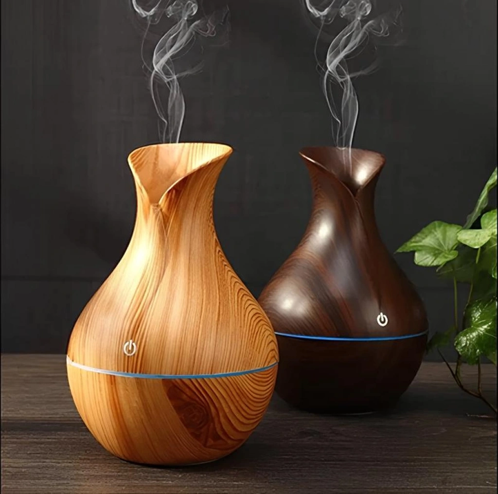 LED IŞIKLI HAVA NEMLENDİRİCİ DİFÜZÖR Ürün ÖzellikleriYaşam alanınızın havasını değiştirin ve huzur verici bir atmosfer yaratın! LED Işıklı Buhurdanlık Hava Nemlendirici Difüzör, zarif vazo tasarımı ve doğal ahşap dokusuyla hem dekoratif bir obje hem de sağlığınız için vazgeçilmez bir yardımcıdır. 14 cm yüksekliğindeki kompakt yapısı, ultrasonik dalgalar aracılığıyla suyu ve ekleyeceğiniz uçucu yağları ince bir buhara dönüştürerek odaya yayar. USB ile çalışma özelliği sayesinde bilgisayar, powerbank veya adaptör üzerinden kolayca güç alabilir; ofis masanızda, yatak odanızda veya salonunuzda güvenle kullanılabilir. Entegre LED ışık mekanizması, loş ortamlarda dinlendirici bir gece lambası görevi görerek SPA etkisini evinize taşır. Kuru havanın neden olduğu cilt kuruluğu ve nefes darlığı gibi sorunları azaltmaya yardımcı olurken, sevdiğiniz aromalarla günün stresinden arınmanızı sağlar.Ürün Teknik ÖzellikleriÖzellikAçıklamaBoyut14 cm (Yükseklik)Güç KaynağıUSB Kablo ile Çalışır (Düşük Enerji Tüketimi)FonksiyonHava Nemlendirme & Aromaterapi DifüzörüIşık ÖzelliğiLED Gece Lambası FonksiyonuTasarımVazo Formunda Ahşap Görünümlü GövdeRenk SeçeneğiAçık Ahşap veya Koyu Ahşap (Görseldeki renklerden birisi karışık gönderilir)Kullanım AlanıEv, Ofis, Yoga Salonu, Bebek Odası ve Çalışma AlanıPaket İçeriği1 Adet LED Işıklı Hava Nemlendirici Difüzör ve 1 Adet USB Güç Kablosu.