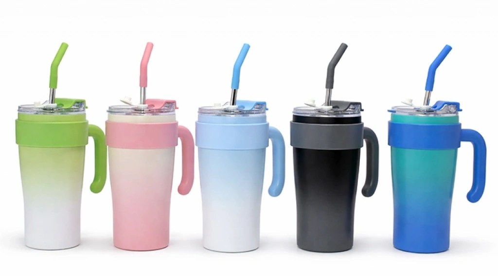 Mat Renk Isı Muhafazalı Kulplu Ve Pipetli Çelik Termos Kupa