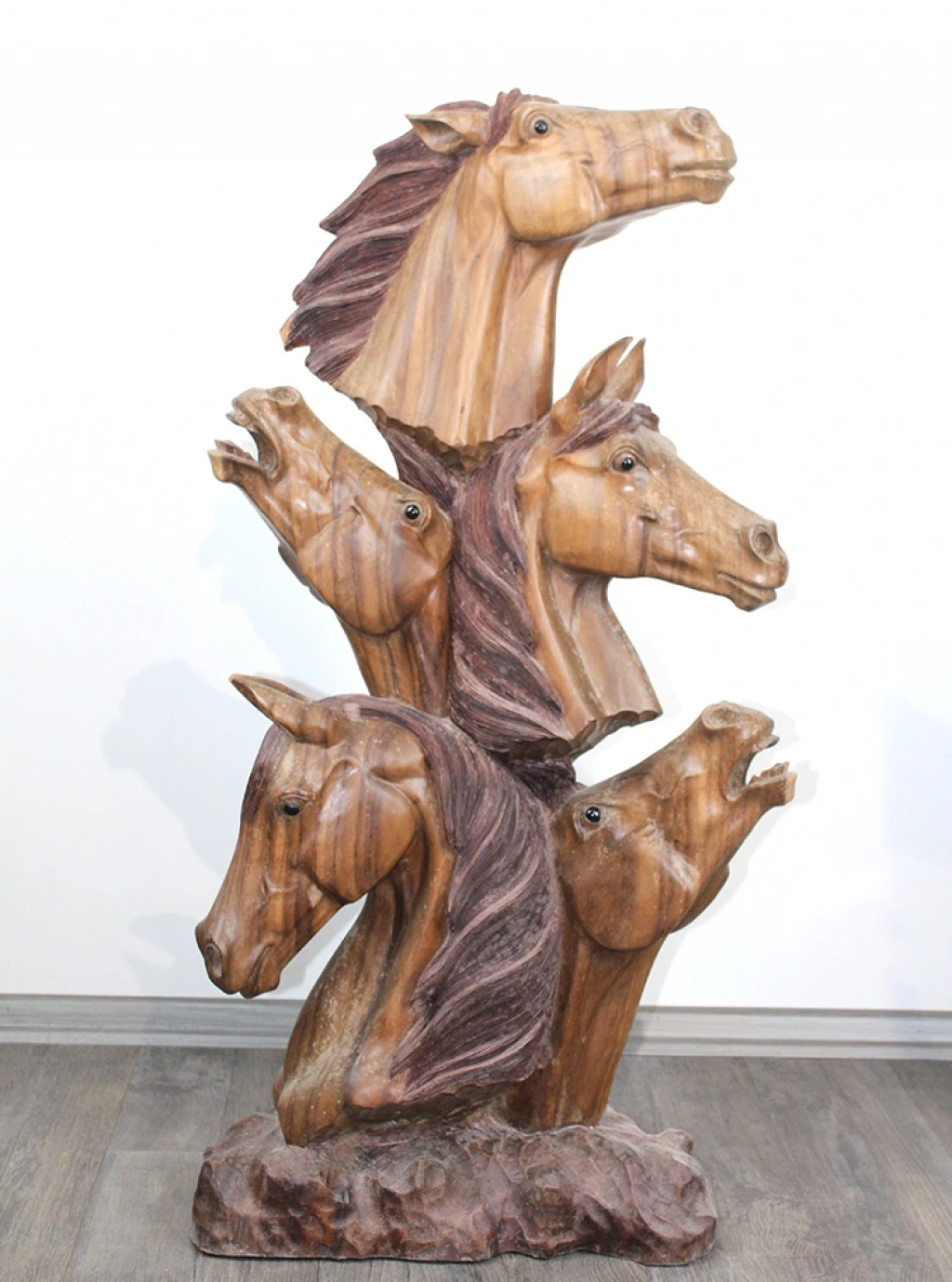 Ahşap Maun Ağacı At Büstü 1.Metre Ratnı-11
