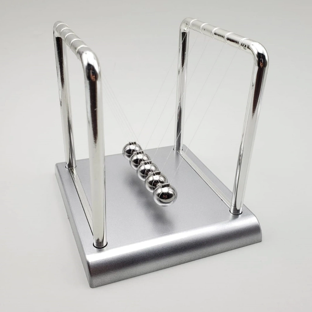 Newton denge topları 5 topun yan yana olup birini çekip bıraktığınız zaman toplar sırası ile gider gelir ve bir süre sonra durur.