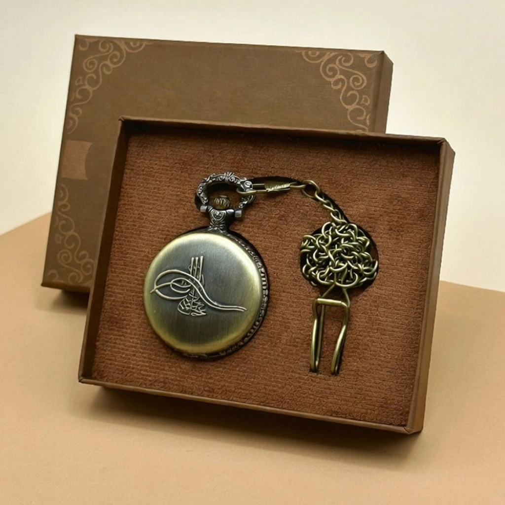 <p><b> Osmanlı Tuğralı Köstekli Saat</b></p><p><b>Köstekli saat</b> kapağında bulunan <b>Osmanlı Tuğrası</b> ile <b>saat eskitme antika </b>görünüm ile dikkat çekmektedir.</p><p><b>Osmanlı tuğrası motifi </b>saat üzerinde farklı bir görünüme sahip olup <b>hediye edeceğiniz kişiye osmanlı </b>dönemini hatırlatacaktır.</p><p><b>Tasarımı </b>ve <b>görünümü</b> özenle üretilmiştir olan <b>antika köstekli saat nostalji </b>severle harika <b>hediye</b>lerden.</p><p><b>Köstekli saat</b> modeli <b>Osmanlı Tuğrası </b>üstünde olup <b>saate </b>farklı bir görünüm vermektedir.</p><p><b>Nostalji antika saat</b> sever sevdiklerinize verebileceğiniz <b>antika köstekli saat çeşit</b>lerinden.</p><p><b>Köstekli saat zincirli </b>olup istediğiniz yere asabilir veya <u>zinciri </u>çıkartıp cebinizde taşıyabilirsiniz.</p><p><b> Osmanlı Tuğrası Köstekli Saat, Köstekli Saat, Metal Köstekli Saat</b> Özellikleri:</p><p>* <b>Köstekli saat </b>kaliteli <b>metal </b>malzemeden üretilmiştir.</p><p>* <b>Ürün kutuyla </b>beraber gönderilmektedir.</p><p>*<b> Köstekli saat</b>'in <b>mekanizması </b>1.kalitedir.</p><p>* <b>Köstekli saat</b> kapağında <b>Osmanlı Tuğrası</b> bulunmaktadır.</p><p>* <b>Nostaljik antika hediyelik saattir</b>.</p><p>* <b>Tasarım </b>ve <b>görünüm </b>şıklığı.</p><p><b> Antika Köstekli Saat, Osmanlı Tuğralı Saat, Metal Köstek Saat, Saat</b> Ölçüleri:</p><p><b>Mukavva Kutu</b> Ölçüsü: 12 x 10 x 2.5 cm</p><p><b>Saat</b> Çapı: 4.5 cm </p><p><b>Zincir'</b>in Uzunluğu : 30 cm</p>