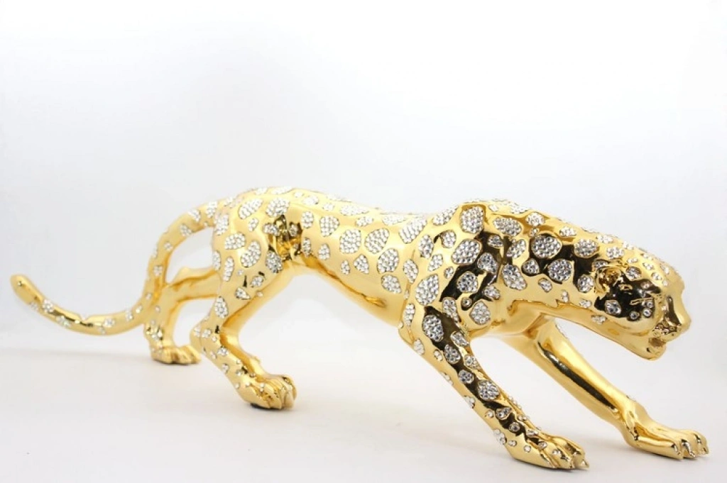 POLYESTER KAPLAN FİGÜRÜ MODEL 1Ürün ÖzellikleriPolyester kaplan figürü, güçlü ve zarif tasarımıyla dikkat çeken lüks bir dekoratif objedir. Parlak altın kaplama efekti ve detaylı işçiliği sayesinde bulunduğu ortama prestijli bir hava katar. Figür, dayanıklı polyester malzemeden üretilmiş olup, uzun ömürlü kullanım sunar. Üzerindeki taş detayları ve işlenmiş desenleriyle göz alıcı bir tasarıma sahiptir. Ev, ofis, otel veya lüks mekanların dekorasyonunda şık bir aksesuar olarak kullanılabilir. Gücü ve asaleti simgeleyen bu heykel, modern ve klasik dekorasyon stilleriyle mükemmel bir uyum sağlar. Ürün 75 cm boyutundadır.Paket İçeriği1 adet Polyester Kaplan Figürü Model 1