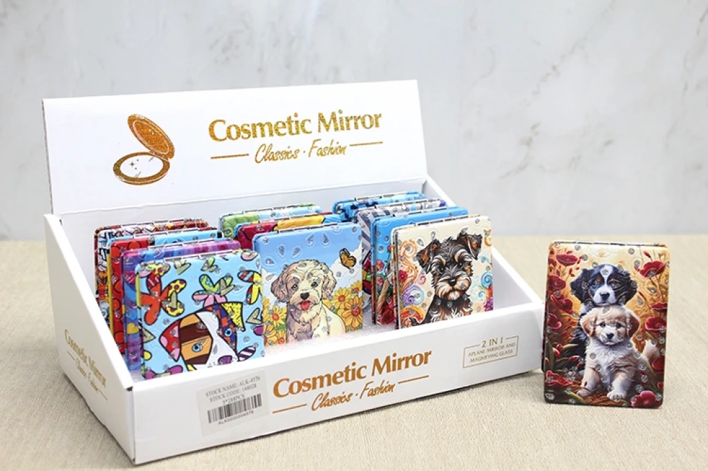 Sevimli Köpek Tasarımıyla Taş İşlemeli İnce El Aynası Dikdörtgen Alk4576