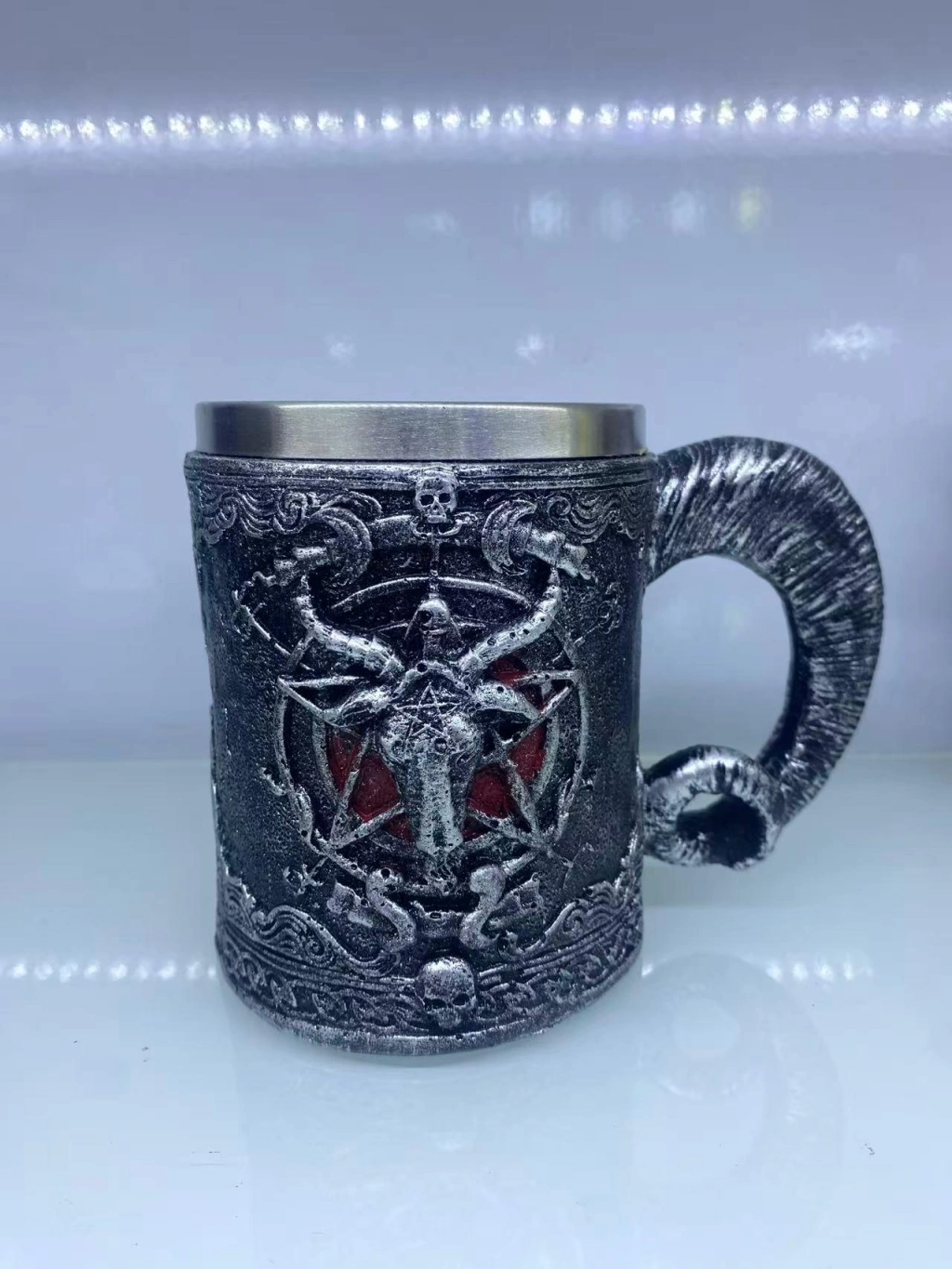 Büyük Boy Eskitme Motifli Çelik Kupa Kod 8026