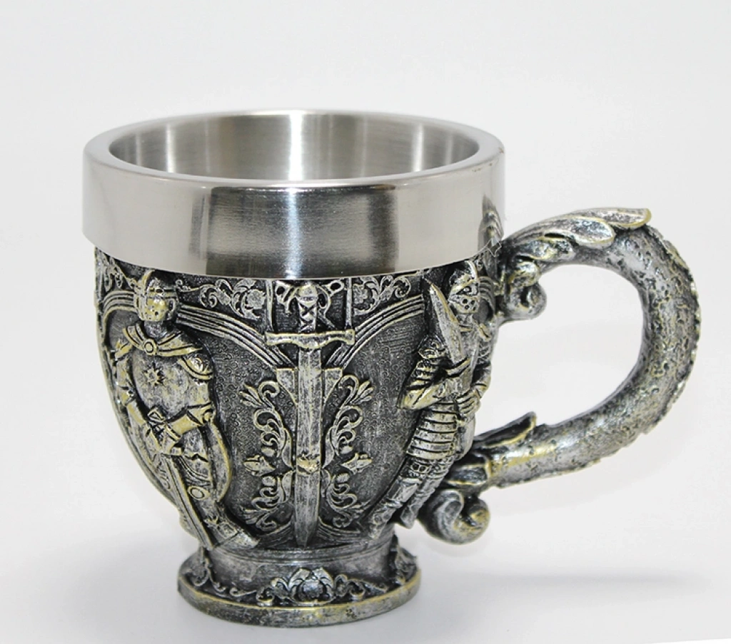 Şövalye Kabartmalı 3D Paslanmaz Çelik Kupa Bardak Liv477