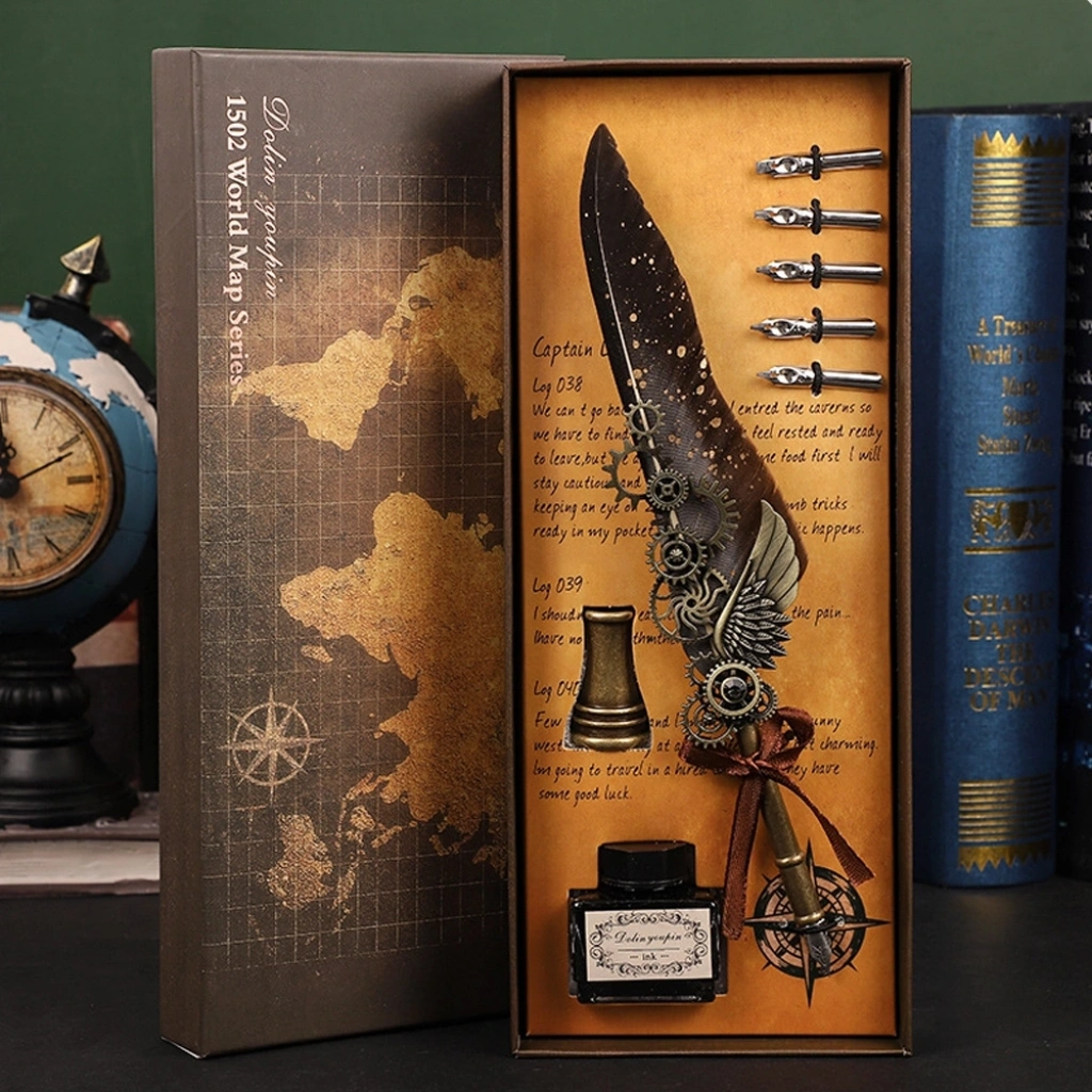 <p><b> Vintage Divit Kalem Hediye Seti</b></p><p><b>Özel tasarımlı divit kalem seti</b> sevdiklerinize çok şık<b> tasarımlı hediye.</b></p><p><font color="#000000"><b>Divit kalem seti özel tasarım </b>olarak tasarlanmış olup <b>özel günlerde</b> en iyi <b>hediye </b>seçeneğidir.</font></p><p><b>Divit kalem seti</b>ni masaüstü <b>dekor </b>olarak kullanabilirsiniz.</p><p><b>Öğretmenler günü, babalar günü, anneler günü, ve sevgililer günü hediyesi</b> olarak verebilirsiniz.</p><p><font color="#000000"><b>Divit kalem set </b>şık bir <b>tasarıma </b>sahip olup dikkatleri üstüne çekecektir.</font></p><p><br></p><p><b> Vintage Divit Kalem, Divit Kalem Set, Mürekkepli Kalem </b>Ürün Özellikleri:</p><p><font color="#424242">* <b>Divit kalem</b> ucu metal tasarımlı uç kısmı tüylüdür.</font></p><p>* Yanında <b>5 farklı yazı</b> başlığı vardır.</p><p><font color="#000000">* <b>Set </b>içerisinde <b>divit kalem mürekkebi</b> yer almaktadır.</font></p><p>* <b>Set </b>içerisinde <b>divit kalem</b> için <b>masaüstü </b>aparatı yer almaktadır.</p><p>* <b>Divit kalem seti</b> özel <b>tasarımlı hediyelik kutu</b>sunda gönderilmektedir.</p><p><br></p><p><b> Kaligrafi Kalem Paket İçeriği:</b></p><p><b>* 1 adet tüylü kalem </b></p><p><b>* 1 adet kalemlik</b></p><p><b>* 1 adet mürekkep</b></p><p><b>* 5 adet divit uç</b></p><p><br></p>