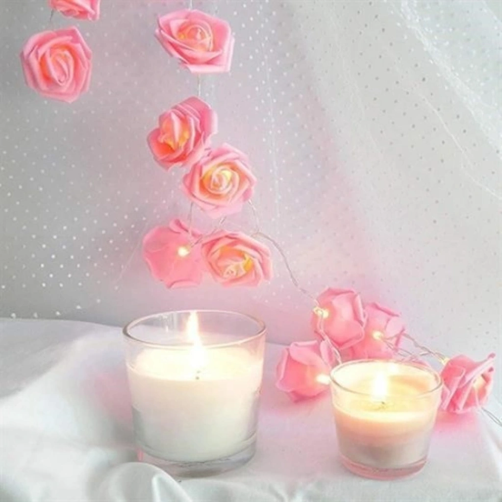 Yapay Gül Tasarımlı Dekoratif Led Işık Pilli (20 Gül)